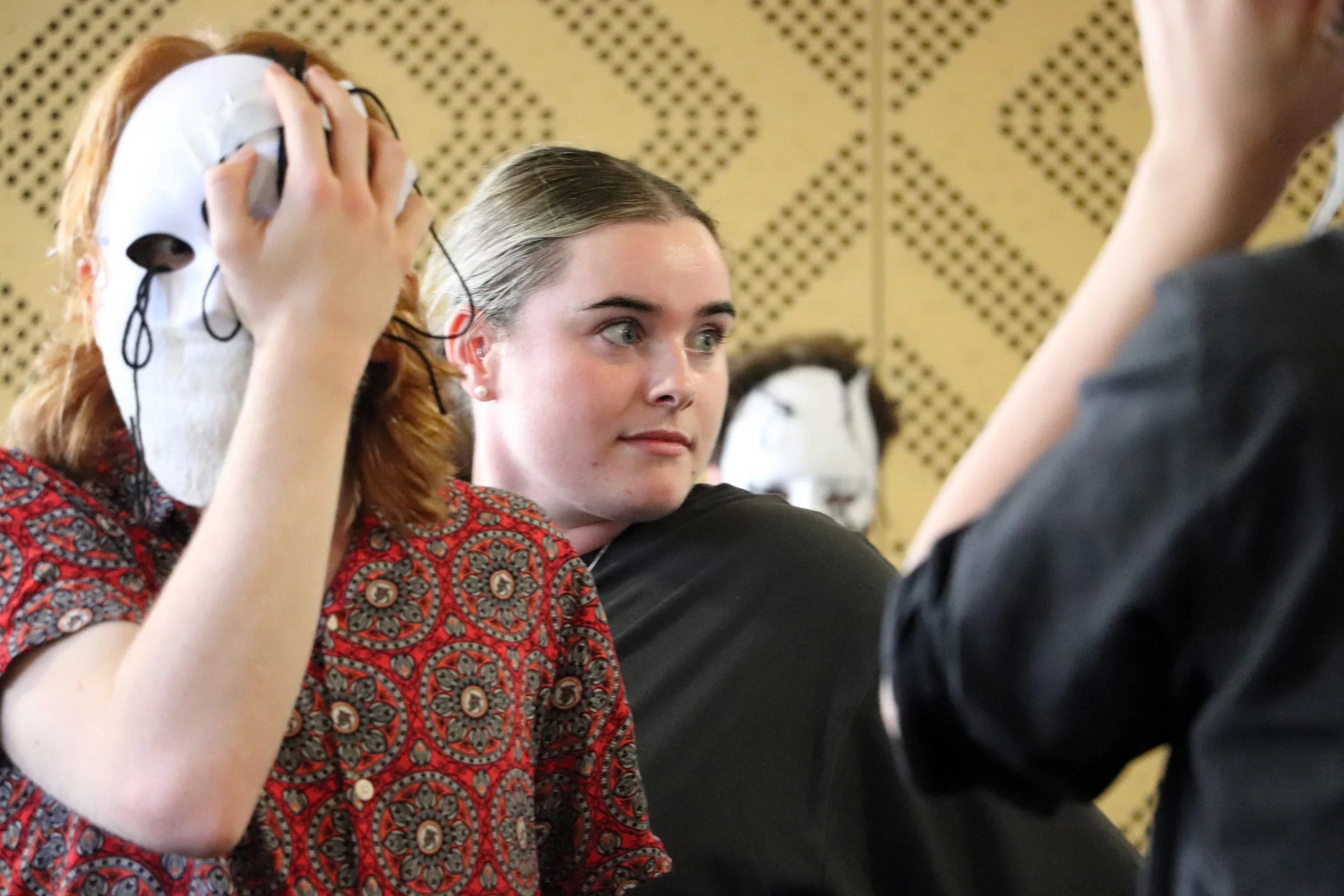 Tik Tok loves nothing more than to take the piss out of the drama activity “walk around the space”... but what does Tik Tok know? NOTHING! What started with neutral actors moving through the space with focus and purpose, transformed into a horde of grotesque, curious and intriguing creatures. Our participants worked through Laban Efforts to transform their physicality to align with the incredible mask designs they created themselves - wring, flick, stab, glide…
